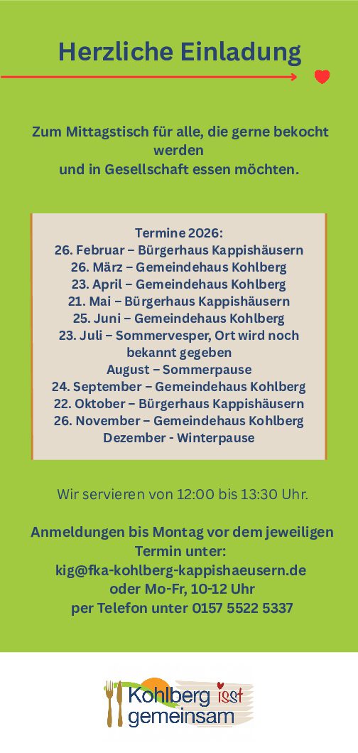 Wir freuen uns, dass Sie den Weg zu uns, dem Verein für Familien-, Kranken- und Altenhilfe Kohlberg-Kappishäusern e.V. gefunden haben.